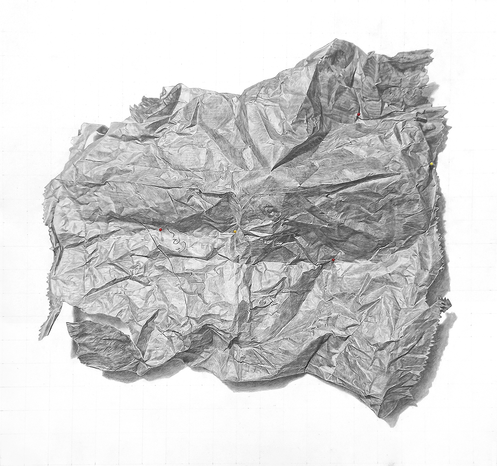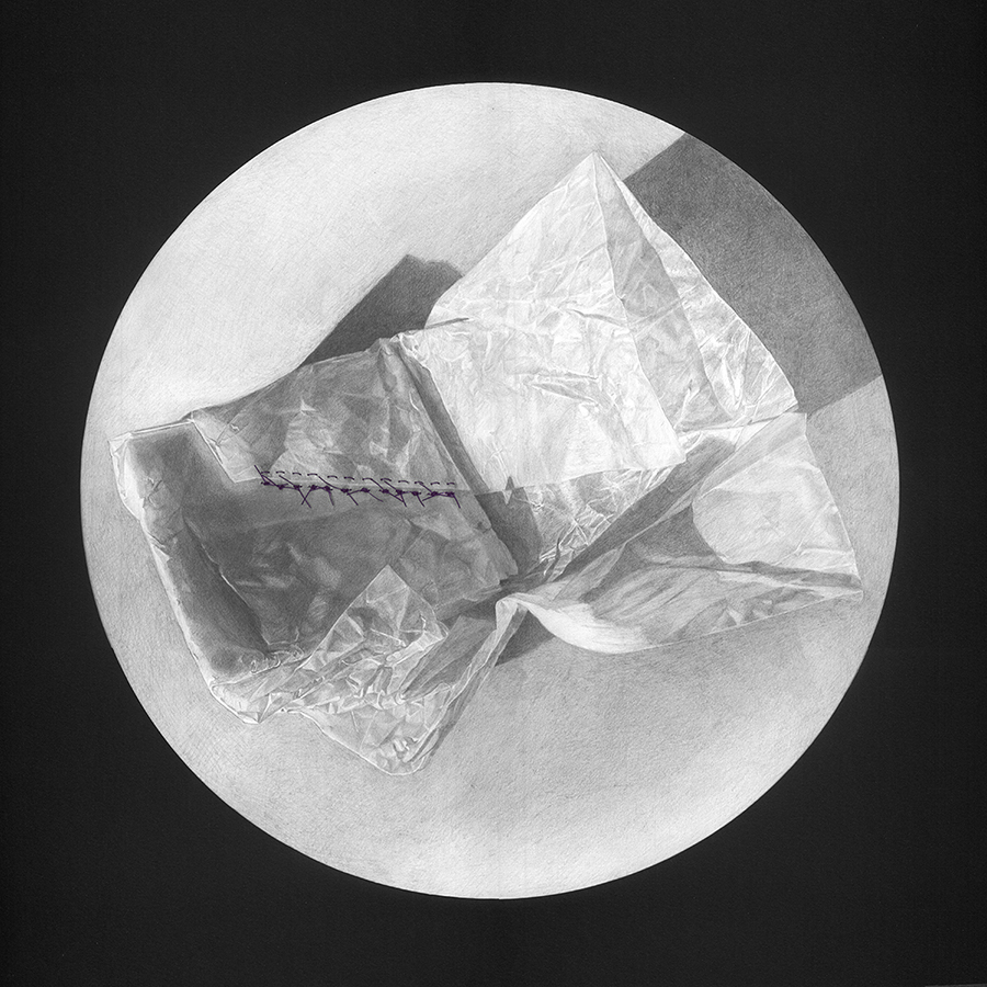גרפיט וחוט תפירה כירורגי על נייר, 45*45 ס"מ, 2018 (נימכר)